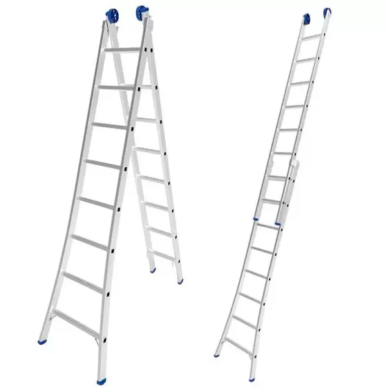 Escada de Alumínio Extensiva 2 x 8 Degraus 2,53 x 4,21 Metros MOR Com 3 anos de garantia, ela suporta até 150 Kg e alcança até 4,21 metros.
